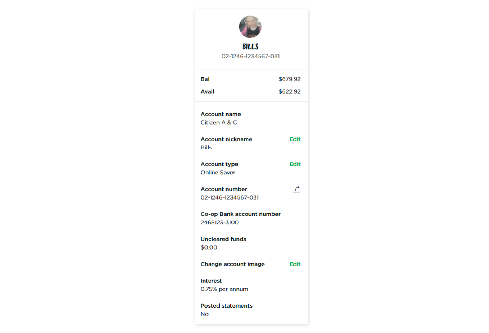 Share your account number – Lets you copy or email your interbank number to share. Someone who needs to pay you from another NZ bank account will need your interbank number.